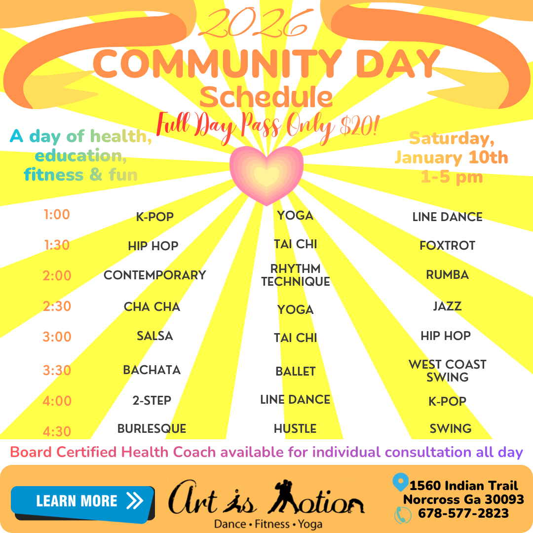 Community Day 2026 BySean Cantkier January 5, 2026 $20.00 Saturday, January 10th 1-5pm $20 Community Day 2026 quantity Add to cart Category: Events Description Description Saturday, January 10th 1-5pm $20 Related products Swing Dance 101 $88.00 – $176.00Price range: $88.00 through $176.00 Select options This product has multiple variants. The options may be chosen on the product page Date Night Dance for Couples $50.00 Select options This product has multiple variants. The options may be chosen on the product page Ranier Rics Workshops $35.00 Select options This product has multiple variants. The options may be chosen on the product page AIM Dance Challenge $25.00 – $250.00Price range: $25.00 through $250.00 Select options This product has multiple variants. The options may be chosen on the product page Share Link: Post navigation Prev AIM Dance ChallengeNext Salsa & Bachata Revival Workshop