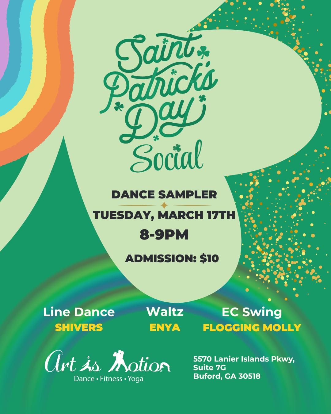 Saint Patrick’s Day Social BySean Cantkier March 6, 2026 $10.00 Saint Patrick's Day Social quantity Add to cart Category: Events Related products Swing Dance 101 $88.00 – $176.00Price range: $88.00 through $176.00 Select options This product has multiple variants. The options may be chosen on the product page Kasia Kozak Workshop $35.00 Add to cart Date Night Dance for Couples $50.00 Select options This product has multiple variants. The options may be chosen on the product page Ranier Rics Workshops $35.00 Add to cart Share Link: Post navigation Prev Waltz Play Workshop